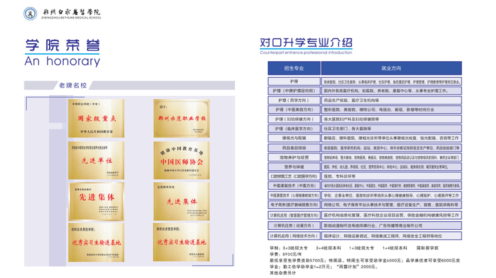 | 郑州白求恩医学院特色专业 | 初中/高中 | 中专/大专 | 三年 | 在线报名 |